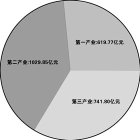 全省生產(chǎn)總值首次突破5000億元大關(guān),達到5401.71億元,按可比價格計算,比上年增長9.4%,增幅高于全國平均水平0.3個百分點。其中,第一產(chǎn)業(yè)完成增加值798.35億元,增長5.8%;第二產(chǎn)業(yè)增加值2580.58億元,增長9.7%。三次產(chǎn)業(yè)結(jié)構(gòu)由2002年的14.2∶49.2∶36.6調(diào)整為14.8∶47.8∶37.4,第三產(chǎn)業(yè)比重進一步提高。