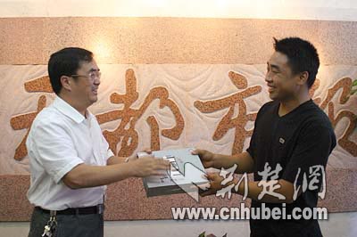 湖北日報(bào)報(bào)業(yè)集團(tuán)總編輯江作蘇為荊州的幸運(yùn)讀者送上時(shí)尚多媒體手機(jī),他是讀報(bào)有獎(jiǎng)活動(dòng)的第四位幸運(yùn)讀者,一大早就和女朋友從荊州趕往武漢,他告訴記者,從活動(dòng)開始他就一直在發(fā)短信答題,每天都要發(fā)好幾條。