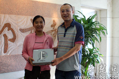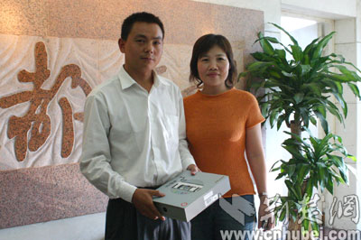 四時整,楚天都市報(bào)副總編輯費(fèi)力和荊楚網(wǎng)副總編輯張劍分別為兩位中獎?wù)哳C發(fā)了獎品,并希望他們繼續(xù)關(guān)注這次活動,能再次成為最后大獎的幸運(yùn)讀者。