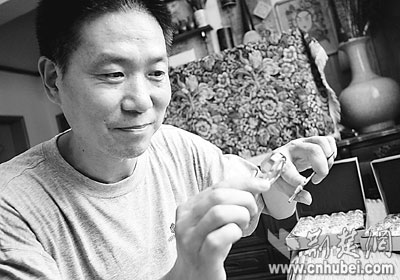慢功出細活。童洪斌在半粒米大小的象牙片上創(chuàng)作的大熊貓,在去年舉行的武漢市國際文化產(chǎn)業(yè)博洽會上,作為禮物送給外國友人。