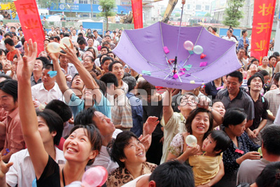 位于銷品茂北側(cè)的中商百貨銷品茂店昨日也同時開業(yè)。為吸引顧客眼球,中商百貨還在開業(yè)慶典時送出了1個價值7000元的鉆戒和5條鉑金項鏈,6位市民搶得“好運”。