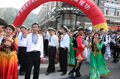 今天上午在新海廣場舉行的第六屆大連狂歡節(jié),更是使歡樂的海洋里掀起了歡樂的海潮。來自國內(nèi)外的24支狂歡巡游隊伍,以花團(tuán)錦簇的民族服裝和極度夸張的藝術(shù)手法,演繹了航天、花神、特洛伊木馬、梁山伯與祝英臺、孔雀仙子、海底動物、蝴蝶服飾、阿凡提、醉酒、美人魚、回娘家、貓友、豪華游覽馬車、日月潭傳說、堂吉訶德、木偶奇遇、狐假虎威、寶蓮燈、海娃與王子、小櫻丸子、尼爾斯騎鵝記、阿里巴巴、輪滑表演等國內(nèi)外著名童話,電影故事等。最為耀眼的是以音樂劇《貓》的扮相出場的表演隊伍,他們獨特的表演和造型贏得了在場觀眾最多的歡呼聲?駳g的服裝藝術(shù)巡游,吸引了數(shù)萬國內(nèi)外游客和當(dāng)?shù)孛癖姷挠^賞。