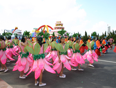 在遍布大連城100多個廣場上,形式多樣的民間文體活動,與狂歡節(jié)巡游隊伍遙相呼應(yīng)。