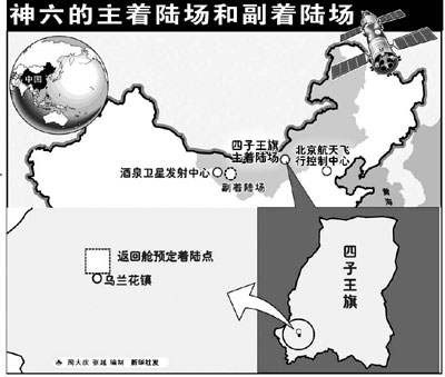“飛船在軌飛行時(shí)間由1天變?yōu)槎嗵欤沟弥憟?chǎng)系統(tǒng)必須全面啟用副著陸場(chǎng)!彼迤饎僬f(shuō)。由于目前技術(shù)條件的限制,還無(wú)法對(duì)長(zhǎng)期的氣象變化進(jìn)行精確預(yù)報(bào),這就使得在選擇飛船“發(fā)射窗口”時(shí),無(wú)法完全保證主著陸場(chǎng)的氣象條件適合降落。位于內(nèi)蒙古中部草原四子王旗的主著陸場(chǎng)和位于酒泉附近的副著陸場(chǎng)相隔1000多公里,可以起到氣象備份的作用。