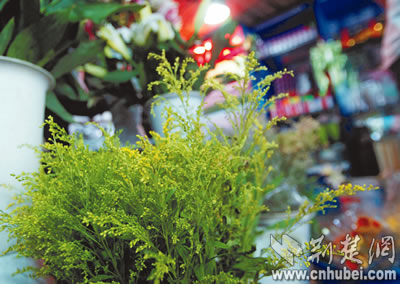 7月18日,讀者來(lái)電反映:在漢口球場(chǎng)路武漢花鳥(niǎo)市場(chǎng)內(nèi),有人售賣(mài)像“滿(mǎn)天星”一樣的花草,疑似有害生物“加拿大一枝黃花”。記者隨即趕到該市場(chǎng),只見(jiàn)臨街10余家門(mén)面里,都擺放有這種花(如圖)。