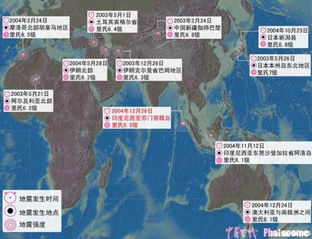 26日,印度尼西亞蘇門答臘島以北海域發(fā)生里氏8.5級強(qiáng)烈地震,并引發(fā)海嘯,波及東南亞和南亞數(shù)個(gè)國家,造成重大人員傷亡。