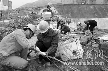 為確保爆破萬無一失,大年初四,公司總工程師李宏兵就從重慶趕到工地督戰(zhàn)!氨齐y度并不小,我們不敢有絲毫的馬虎!崩詈瓯f,防滲墻高24米,墻體不均質(zhì)、不等厚,爆破時既要將防滲墻混凝土炸碎,又要將預埋灌漿鋼管炸斷,爆破難度可想而知。