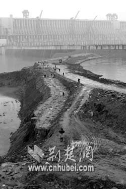 1997年11月大江截流后,三峽工程二期上、下游橫向圍堰在左岸動工,此圍堰將長江主河床截斷,與一期形成的混凝土縱向圍堰共同形成二期基坑。在基坑內(nèi)建起了泄洪壩段、左岸廠房壩段及電站廠房等主體建筑物。2002年5月和7月,先后拆除了二期上、下土石橫向圍堰。