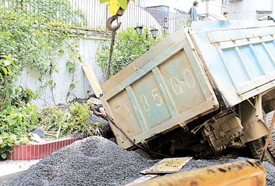 荊楚網(wǎng)(楚天都市報) (記者 劉俊華 實習生 蘆何秋 記者 宋枕濤) 昨日下午2時許,漢口球場新村一校園刷黑施工現(xiàn)場,一輛滿載瀝青的貨車軋塌路基發(fā)生側歪,車廂內瀝青傾瀉而下,埋住了一位指揮倒車的農(nóng)民工。幾分鐘后,這位工人被工友們扒出來,因瀝青溫度太高,他只揮動了兩下手,就再也沒能醒來……