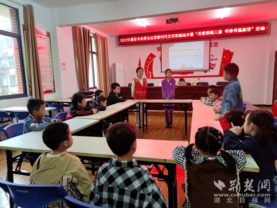 當(dāng)天,黃石老虎頭社區(qū)新時(shí)代文明實(shí)踐站聯(lián)合黃石市中級(jí)人民法院志愿服務(wù)隊(duì),組織開展了以“關(guān)愛困境兒童,書香傳遞真情”為主題的讀書日活動(dòng)。