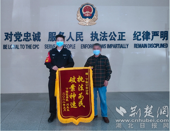 荊楚網(wǎng)(湖北日報網(wǎng))訊(通訊員陸佳)“外公手機丟掉后愁眉苦臉地向警察叔叔求助,第二天,警察叔叔不僅抓到了小偷,還幫忙找回了手機,真的很厲害……”5月2日,在黃石市下陸區(qū)團城山派出所,一個6歲的小女孩將一幅簡筆連環(huán)畫送到了民警陳百彬手中,同時還送上了一面錦旗。