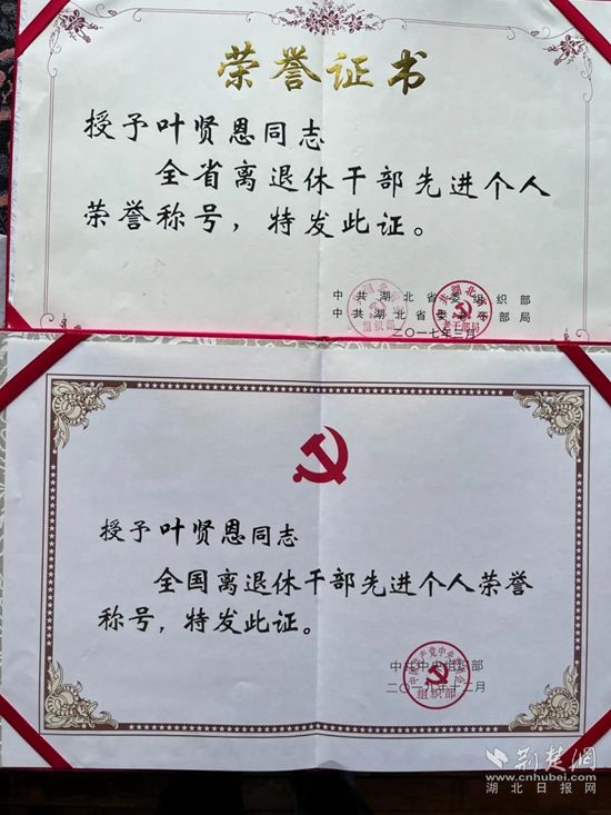現(xiàn)居鄂城區(qū)鳳凰街辦濱湖社區(qū)的葉賢恩,1933年出生湖北蘄春縣管窯鎮(zhèn)。父輩佃農(nóng),家境貧寒,一件單衣,新三年,舊三年,縫縫補(bǔ)補(bǔ)又三年。九歲“超齡”,方才入讀舊式私塾。