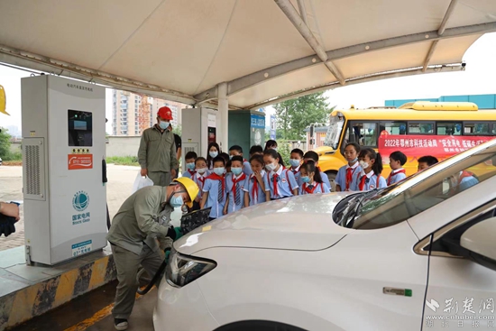 隨后,小朋友們來到國網(wǎng)葛山大道電動(dòng)汽車充電站參觀學(xué)習(xí)。該充電站建設(shè)于2016年,是鄂州市城區(qū)第一個(gè)8樁標(biāo)準(zhǔn)直流充電站,極大方便了城區(qū)居民綠色低碳出行。充電站運(yùn)維人員向小朋友們介紹了充電站的基本情況、電動(dòng)汽車充電原理和綠色出行理念后,實(shí)景演示了如何給電動(dòng)汽車充電以及如何給充電站消殺。并向小朋友們發(fā)放了安全用電手冊,科普了安全用電知識。