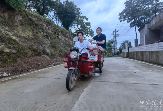尹傳波騎著三輪車帶陽新殘聯(lián)理事長劉富華(右)到村民家體驗出診。這樣的出診,尹傳波默默干了16年。通訊員 供圖