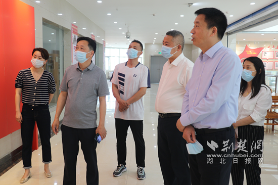 陽新縣委書記萬鼎(右二)調(diào)研陽新圖書館。通訊員 供圖