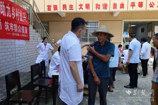 康復(fù)科醫(yī)務(wù)人員在梅川鎮(zhèn)劉昌村開(kāi)展義診活動(dòng)。通訊員 供圖