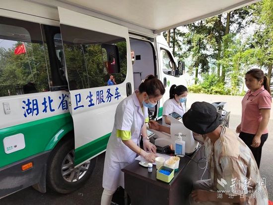 衛(wèi)生服務(wù)車開(kāi)進(jìn)田間地頭為群眾免費(fèi)體檢。通訊員 供圖