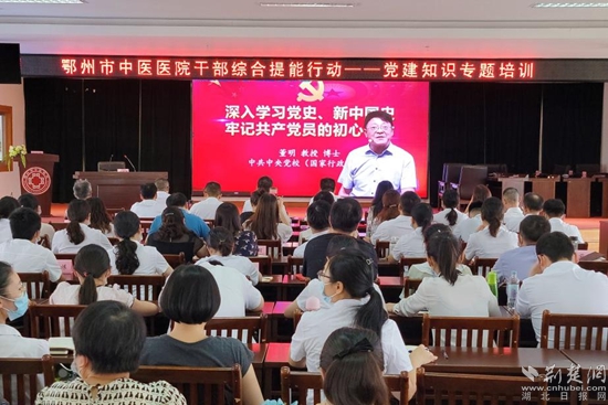 荊楚網(wǎng)(湖北日報網(wǎng))訊(通訊員 姚周君)6月28日下午,鄂州市中醫(yī)醫(yī)院慶祝建黨101周年暨黨建知識專題培訓會議在門診八樓會議室隆重召開,院領導班子成員、全體黨員、入黨積極分子及中層干部140余人參加。會議由院長熊前榮同志主持。