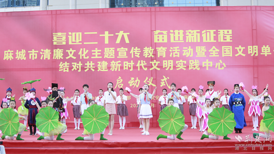 荊楚網(wǎng)(湖北日?qǐng)?bào)網(wǎng))訊(通訊員謝靖)“濯濯清漣,亭亭清蓮,一品清廉,愛(ài)蓮,更贊廉。”6月29日,在麻城市清廉文化宣傳教育活動(dòng)暨全國(guó)文明單位結(jié)對(duì)共建啟動(dòng)儀式上,麻城市實(shí)驗(yàn)二小的情景劇《一品清廉》傳來(lái)聲聲清脆的倡廉之聲,贏得現(xiàn)場(chǎng)觀眾陣陣掌聲。