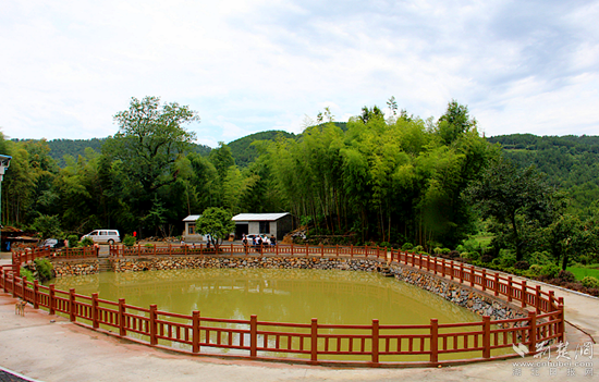 竹林之上,一棵450年的皂莢樹(shù)旁,當(dāng)家塘石岸成環(huán),仿古式護(hù)欄勾勒出這口清水塘的模樣。踩在塘畔的行道磚上,望著村民整潔寬敞的房舍,水泥路到家門(mén)口,車(chē)子開(kāi)到塆里頭。