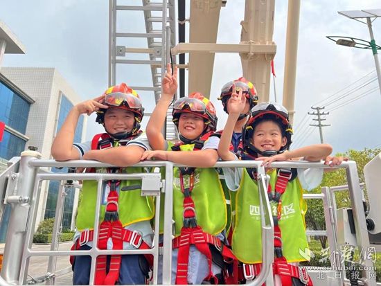 在體驗(yàn)和互動環(huán)節(jié),孩子們觀看了消防員精彩的技能演示,穿上戰(zhàn)斗服,并乘上登高消防車體驗(yàn)高處救援,孩子們不時發(fā)出陣陣歡呼聲,著實(shí)過足了“消防癮”。