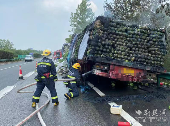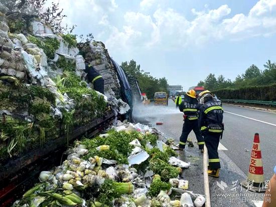 荊楚網(wǎng)(湖北日報網(wǎng))訊(通訊員 胡旭鵬)8月1日,G50滬渝高速往黃石大橋方向一貨車輪胎起火引發(fā)火災(zāi),所幸事故未造成人員傷亡,但是滿車的新鮮蔬菜變成了“熟菜”。