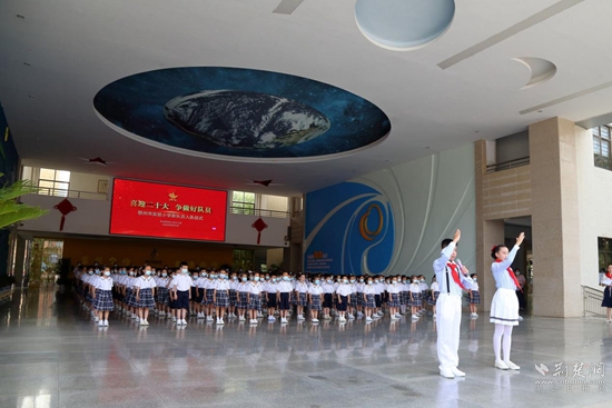 “全國文明校園”實驗小學“喜迎二十大 爭做好隊員”新隊員入隊儀式。通訊員 供圖