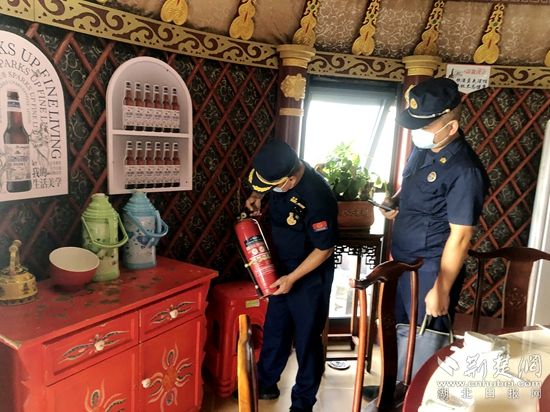 期間,檢查組一行詳細(xì)對(duì)使用燃?xì)獾母黝惒惋媹?chǎng)所是否取得燃?xì)饨?jīng)營(yíng)許可證,廚房與其他部位防火分隔,是否使用燃?xì)鈭?bào)警器,燃?xì)庠O(shè)備、管線設(shè)置和維護(hù)等情況進(jìn)行檢查,并重點(diǎn)就燃?xì)廛浌苁欠翊嬖诟g、老化現(xiàn)象、廚房電氣線路敷設(shè)、油煙管道是否定期清理等情況進(jìn)行查看。同時(shí),還向餐飲工作人員講解燃?xì)獾氖褂靡?guī)范、檢漏方法、泄漏的應(yīng)急措施及逃生與自救。