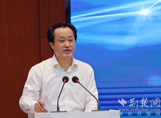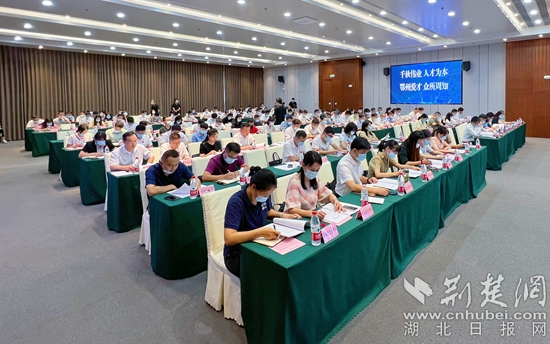 鄂州市委組織部常務(wù)副部長(zhǎng)、市委人才辦主任龔慎作介紹。金康 攝