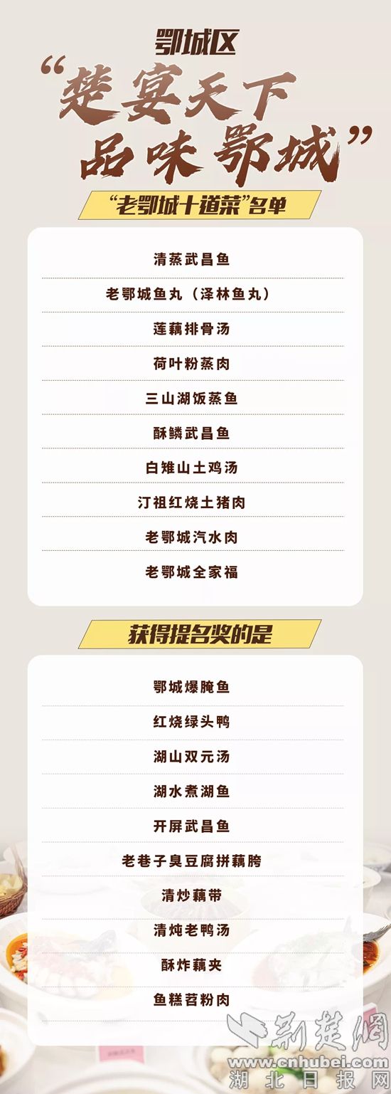 鄂城區(qū)首屆“十大農(nóng)家樂”名單及鄂城區(qū)“楚宴天,品味鄂城”“老鄂城十道菜”名單如下:
