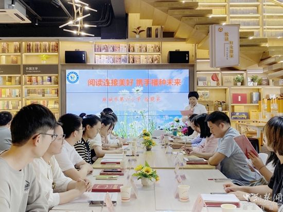 讀書會現(xiàn)場,麻城市第六小學黨委副書記、全國TCL希望工程燭光獎引領獎獲得者徐能英老師就《閱讀連接美好 攜手播種未來》這一課題作了經驗交流,她針對學生的身心特點,并結合教學自身規(guī)律,創(chuàng)新閱讀教學方法,通過班級圖書角建設、經典誦讀、作詩比賽、暑期游學等方式,引導學生形成正確的閱讀動機,激發(fā)讀書的樂趣,教給學生讀書的方法,培養(yǎng)良好的讀書習慣,提升學生的文化底蘊,營造濃厚的學習氛圍。