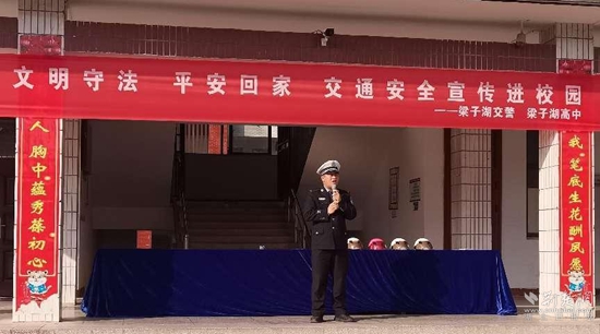 荊楚網(wǎng)(湖北日?qǐng)?bào)網(wǎng))訊(通訊員 劉靜)11月9日,正值全國(guó)消防日。當(dāng)天下午,梁子湖高中邀請(qǐng)梁子湖區(qū)交警大隊(duì)民警開(kāi)展交通安全以及法律法規(guī)知識(shí)講座。學(xué)校高一、高二年級(jí)700余名學(xué)生參加了此次講座。