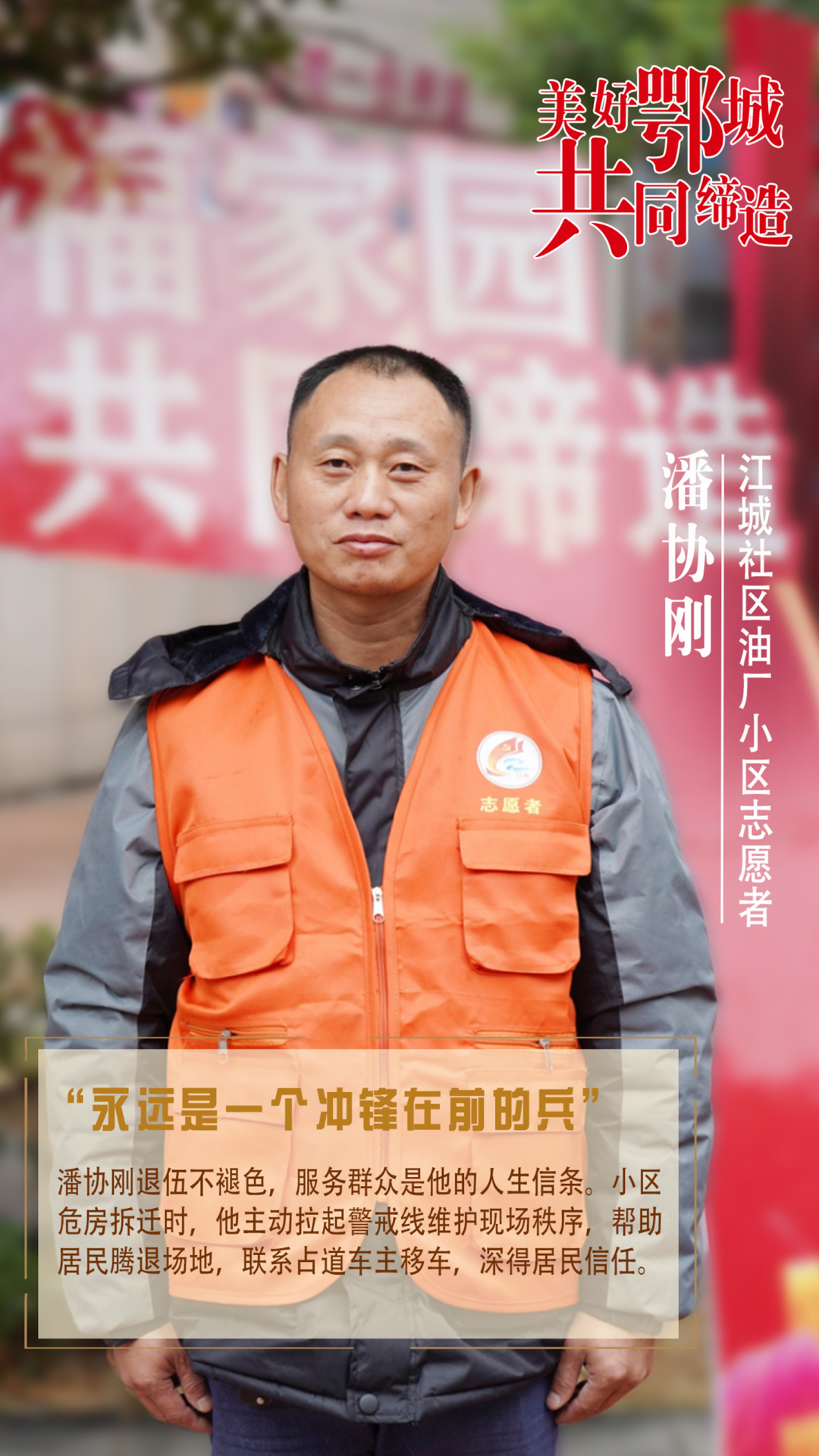 潘協(xié)剛退伍不褪色,服務(wù)群眾是他的人生信條。小區(qū)危房拆遷時(shí),他主動(dòng)拉起警戒線維護(hù)現(xiàn)場(chǎng)秩序,幫助居民騰退場(chǎng)地,聯(lián)系占道車主移車,深得居民信任。