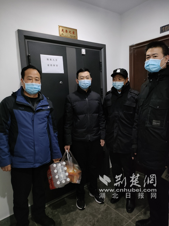 荊楚網(wǎng)(湖北日報網(wǎng))訊(記者 田城 通訊員 慶雪萌)寒潮帶來的低溫,擋不住真情送暖的腳步。12月1日,咸寧高新區(qū)咸寧之星小區(qū),高新區(qū)黨工委委員、區(qū)疫情防控指揮部副指揮長賴長青與一線防疫人員一起為該小區(qū)居家隔離人員送上“暖心包”,為讓居家隔離人員在家期間做好抗寒保暖。
