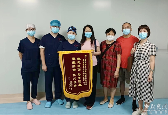 患者康復(fù)后為重癥醫(yī)學(xué)科送來(lái)錦旗。通訊員 供圖