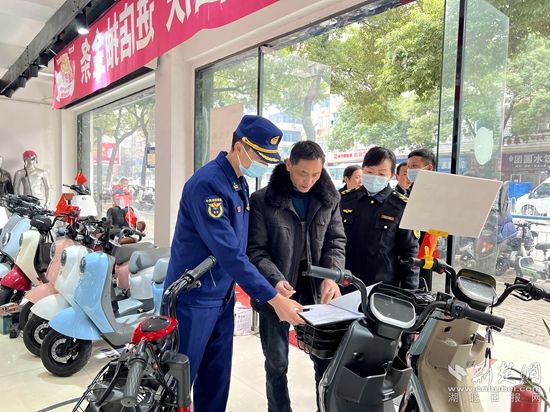 荊楚網(wǎng)(湖北日?qǐng)?bào)網(wǎng))訊(通訊員盧雅婕)為加強(qiáng)電動(dòng)自行車(chē)銷(xiāo)售領(lǐng)域安全管理,12月7日,黃石市黃石港區(qū)消防救援大隊(duì)聯(lián)合市場(chǎng)監(jiān)督管理局對(duì)電動(dòng)自行車(chē)經(jīng)營(yíng)場(chǎng)所安全隱患開(kāi)展專(zhuān)項(xiàng)排查整治。