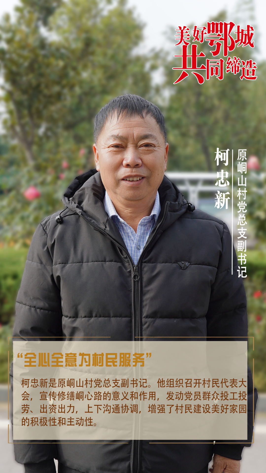 柯忠新是原峒山村黨總支副書(shū)記。他組織召開(kāi)村民代表大會(huì),宣傳修繕峒心路的意義和作用,發(fā)動(dòng)黨員群眾投工投勞、出資出力,上下溝通協(xié)調(diào),增強(qiáng)了村民建設(shè)美好家園的積極性和主動(dòng)性。