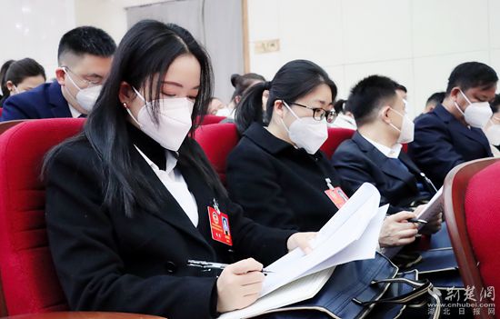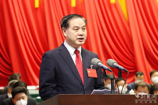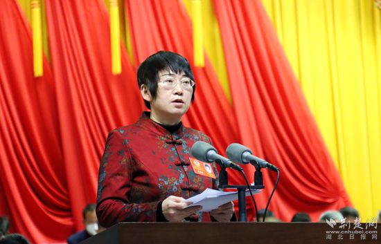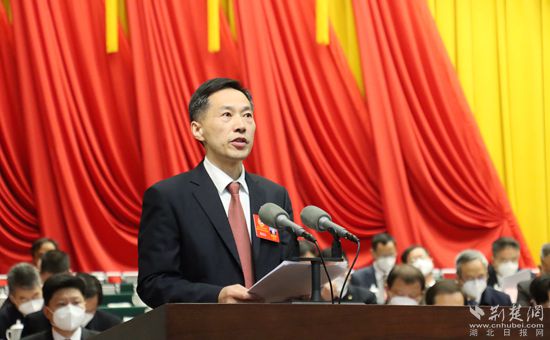 洪再林作《中國人民政治協(xié)商會(huì)議黃岡市第六屆委員會(huì)常務(wù)委員會(huì)工作報(bào)告》。記者胡小軍 攝
