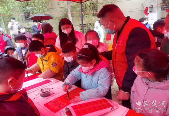 伴隨著熱烈的鼓點,活動在社區(qū)文體愛好者們的軍鼓隊表演聲中拉開序幕。記者注意到,活動現(xiàn)場設置有寫春聯(lián)區(qū)、義診服務區(qū)、免費理發(fā)區(qū)、反詐宣傳區(qū)等多個板塊。