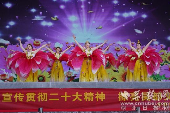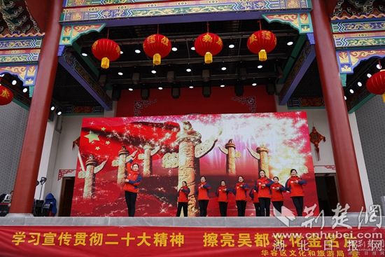 新春廟會將黨的二十大宣講、文藝演出與民俗表演相結(jié)合,開場舞蹈《荊楚歡歌》、湖北大鼓《二十大精神放光芒》、詩朗誦《航程》、反串《長袖舞》、男聲獨(dú)唱《我和我的祖國》等文藝節(jié)目和傳統(tǒng)的舞獅、雜技、魔術(shù)等老百姓喜聞樂見的表演在廟會現(xiàn)場輪番上演。
