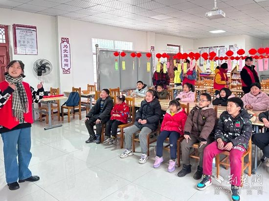 大二護理專業(yè)的丁佳慧在2021年就加入了學校的“星火支教”團隊,寒假回到家鄉(xiāng)麻城后,她組建“閱而有味讀書會”。在春節(jié)期間,聯(lián)合麻城市公益組織——青力締造服務隊,一起走進麻城市三河口鎮(zhèn)碧楓沖村委會留守兒童之家,為30多個小朋友留守的兒童送去溫暖禮包,陪他們做游戲,并為他們帶去了別開生面的花燈制作課。