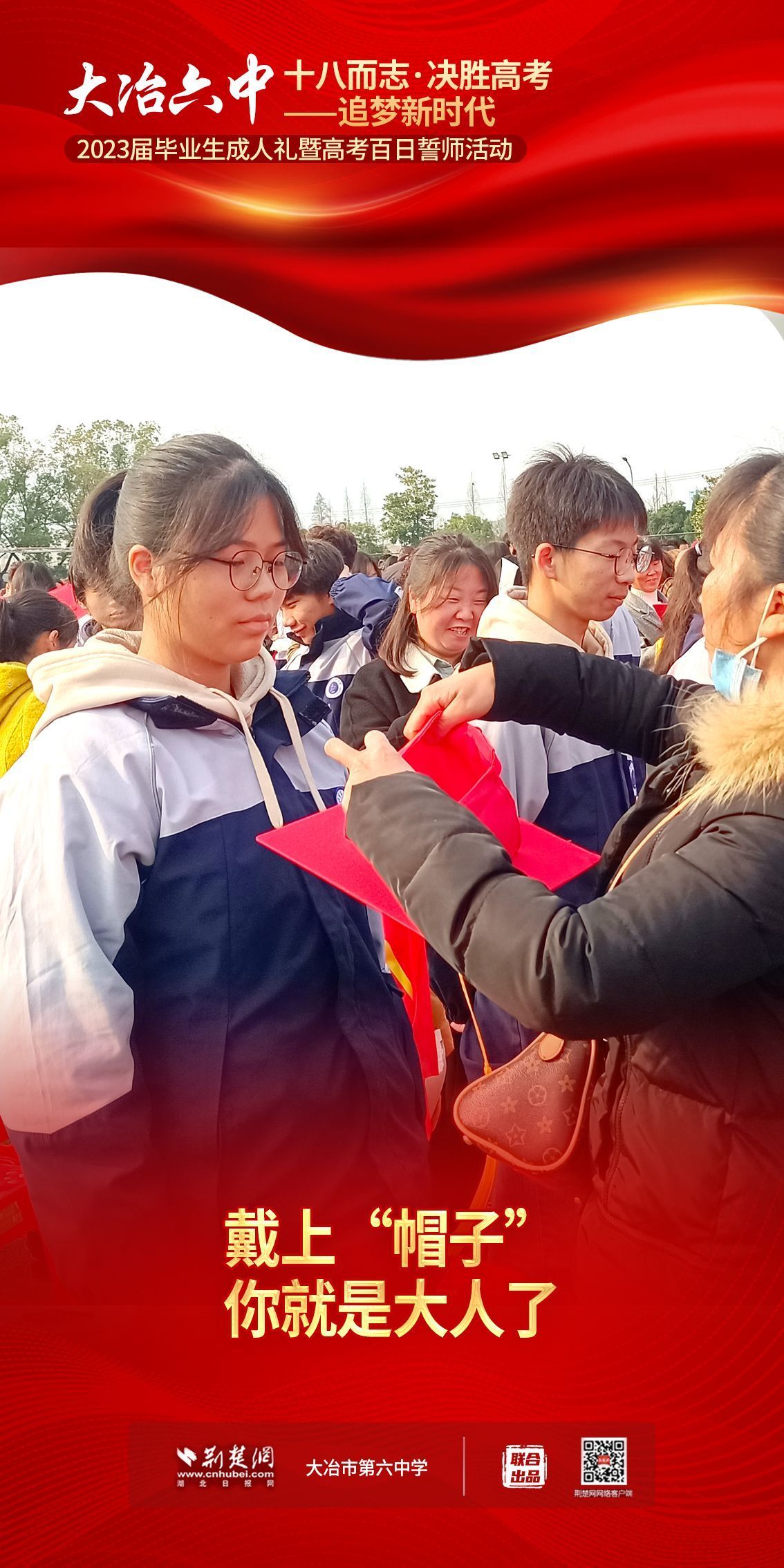 荊楚網(湖北日報網)訊(記者 左乙辰 通訊員 吳江濤、任慧)撥穗正冠,禮成!2月25日,大冶市第六中學3600名學子和家長、老師共同見證該校1200名高三同學十八歲成人儀式,共赴六月的理想征程。