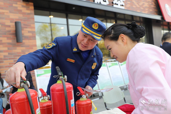 “你可以看下這個滅火器的指針,在紅色區(qū)域,是不能使用的......”消防宣傳人員對群眾說到。在宣傳活動現(xiàn)場,消防宣傳人員與前來咨詢的市民進行交流,認真回答他們提出的關于消防產(chǎn)品購買、使用及真假認別等方面的各種問題,通過優(yōu)劣產(chǎn)品實物對比、向市民群眾講解消防產(chǎn)品知識。