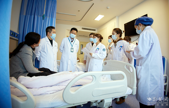 在黃岡市中心醫(yī)院皮膚科主任張萌的陪同下,華中科技大學(xué)同濟(jì)醫(yī)學(xué)院附屬協(xié)和醫(yī)院林能興教授進(jìn)行現(xiàn)場(chǎng)查房,對(duì)部分疑難病例給出了專業(yè)的處理意見。