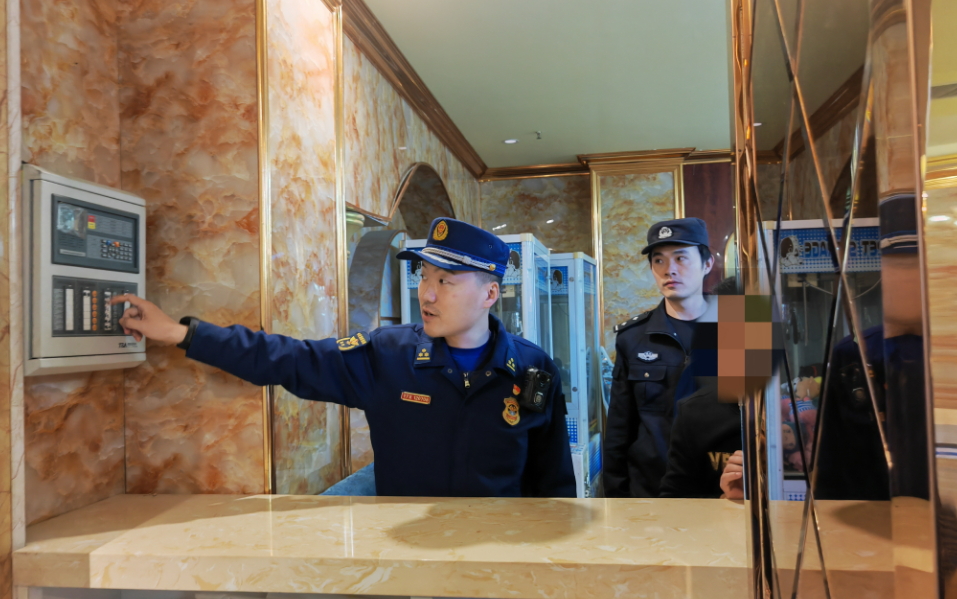 消防員在KTV進(jìn)行檢查