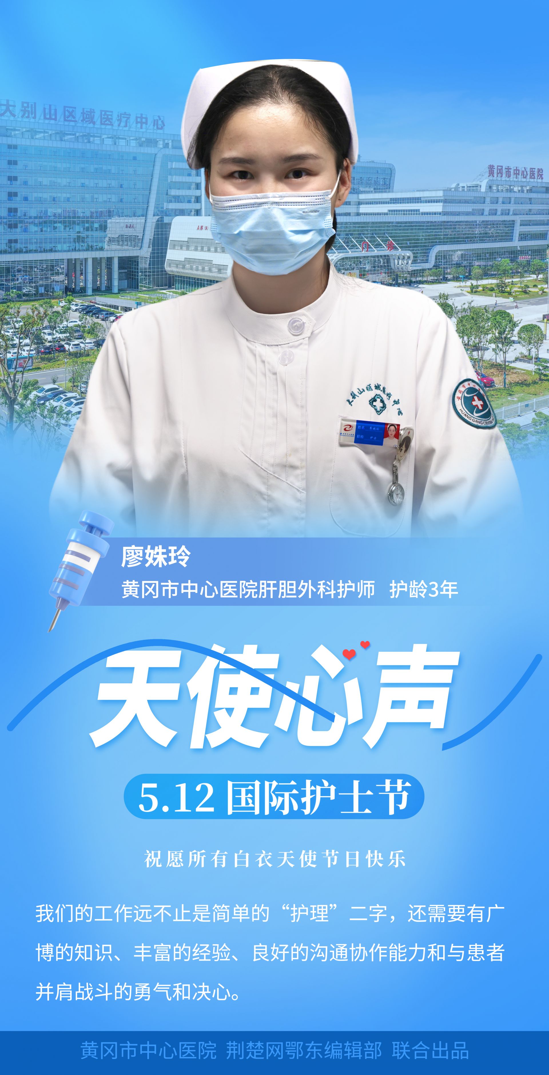 第112個國際護士節(jié)如約而至,讓我們一起聆聽黃岡市中心醫(yī)院護士代表們的心聲,禮贊每一位“白衣天使”的辛勤付出。