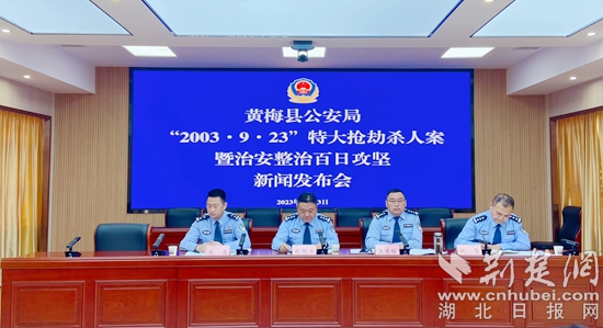 黃梅濯港“2003·9·23”特大搶劫殺人案新聞發(fā)布會(huì)現(xiàn)場(chǎng)。通訊員 供圖