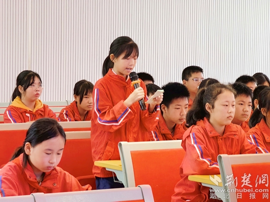 紅安縣永河小學(xué)子曰文學(xué)社班長、六(3)班12歲的女孩周艷玲在該校報告廳深情地朗誦著她自己寫的詩歌《離》,臺下不時響起陣陣掌聲。