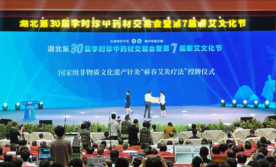 授予國家級非物質文化遺產針灸“蘄春艾灸療法”牌匾。阮瓊 攝