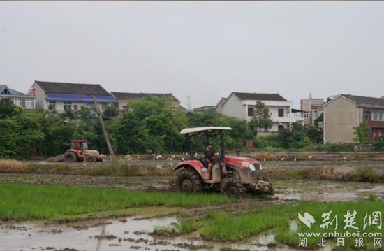 荊楚網(湖北日報網)訊(通訊員丁元中)5月30日,鄂城區(qū)汀祖鎮(zhèn)鳳凰村種田大戶徐師傅在搶收完小麥后,迎來了千余畝水稻種植的黃金時期。